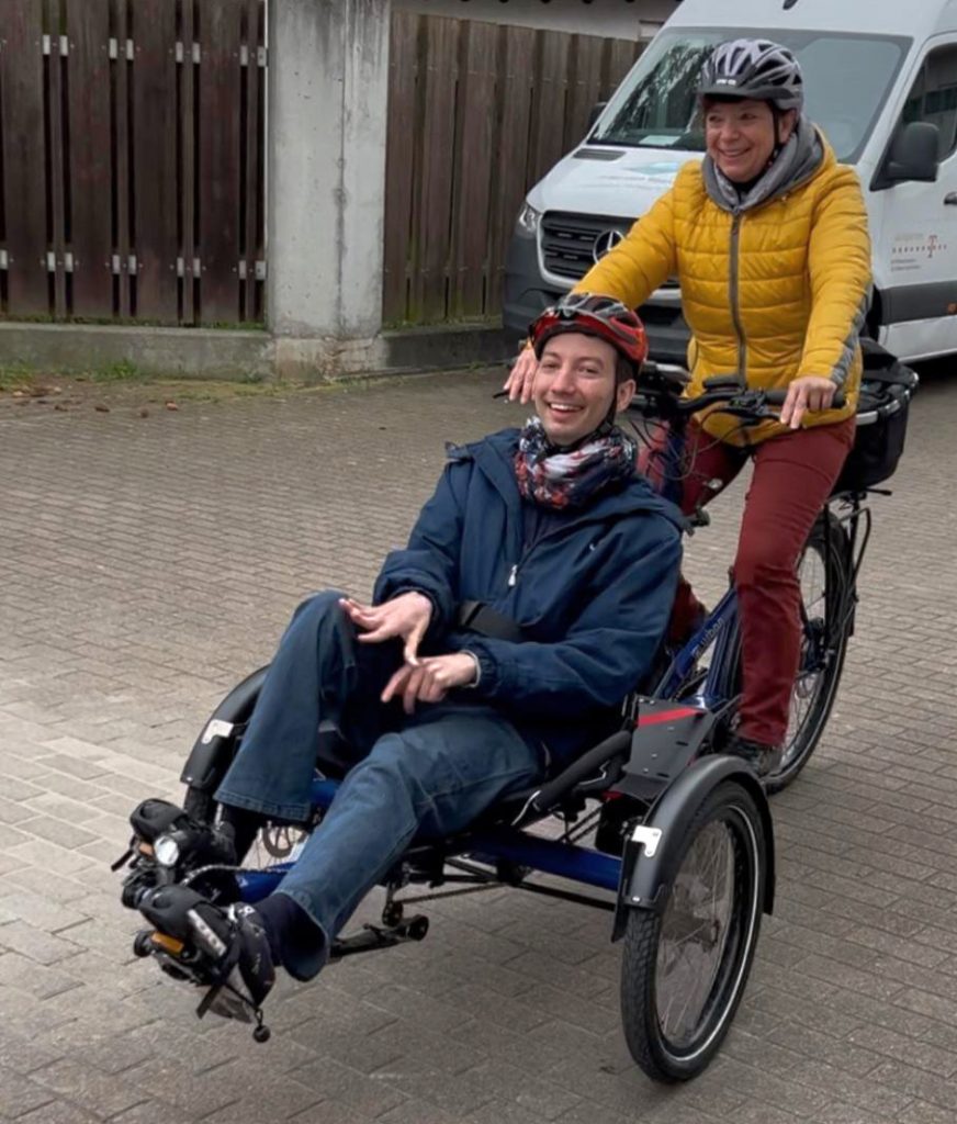 Unser neues Tandemdreirad feierte beim Vereinsausflug am 11. Mai 2025 Premiere. Mehrere Teilnehmer*innen probierten es begeistert aus und erlebten Fahrspaß pur. Das Rad ermöglicht gemeinsames Radeln für alle – sicher, stabil und voller Miteinander.