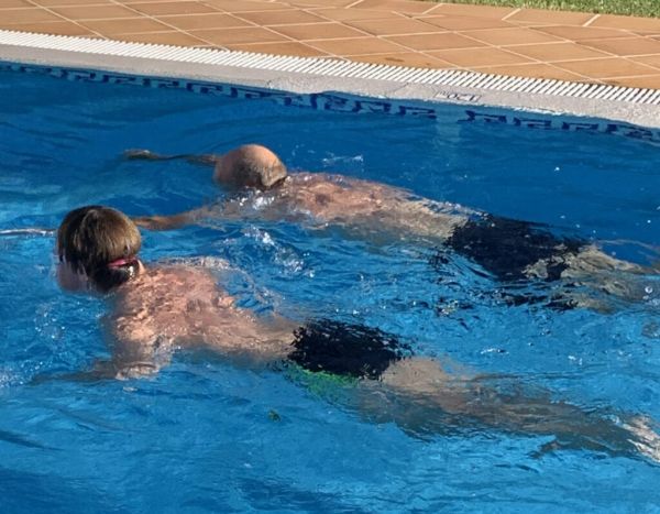 In erster Linie steht der Spaß mit dem kühlen Nass im Vordergrund, aber es wird auch spielerisch darauf geachtet, dass einige Bahnen am Stück durchgeschwommen werden und durch Motivation und Ansporn die Kondition trainiert wird. Auf der Decke darf danach auch eine Runde Karten gespielt und ausgeruht, oder aber auf der Spielwiese gekickt werden.