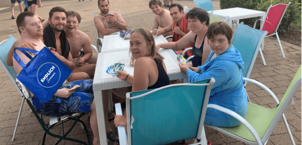ie Teilnehmenden üben nebenbei Ihre Selbstständigkeit indem Sie sich alleine duschen, umkleiden, die Vollständigkeit ihrer Sachen überprüfen und sie am Ende des Treffs wieder zusammenpacken. Bei Bedarf greifen die Betreuerinnen und Betreuer helfend ein und achten auf entsprechende Körperpflege und -hygiene.